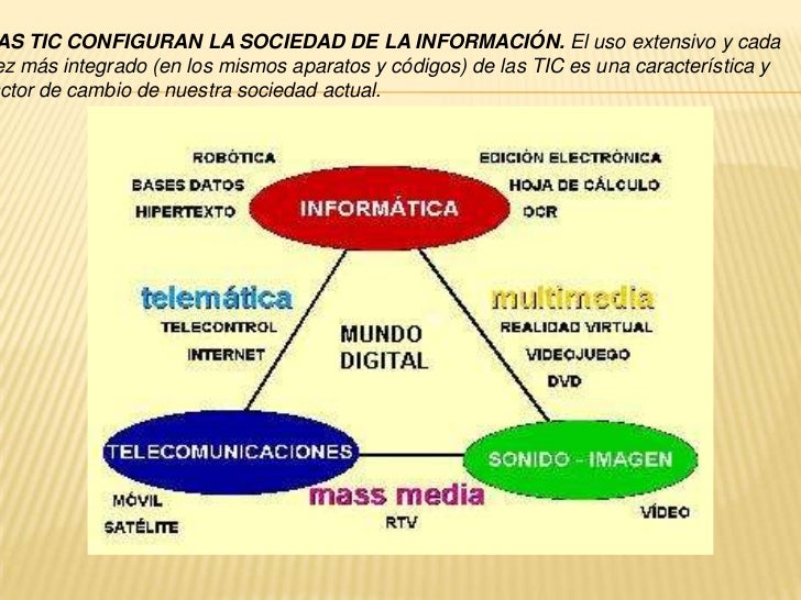 Las Tecnologías de la Información y la Comunicación (TIC) son los recursos, herramientas y programas que se utilizan para procesar,